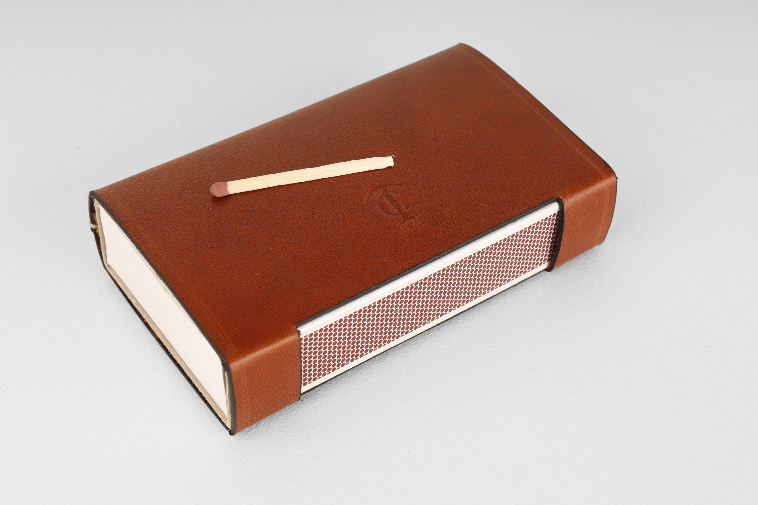 Handgjort tändsticksfodral i läder för den klassiska svenska tändsticksasken – tillverkat i vegetabiliskt garvat läder från Tärnsjö Garveri.