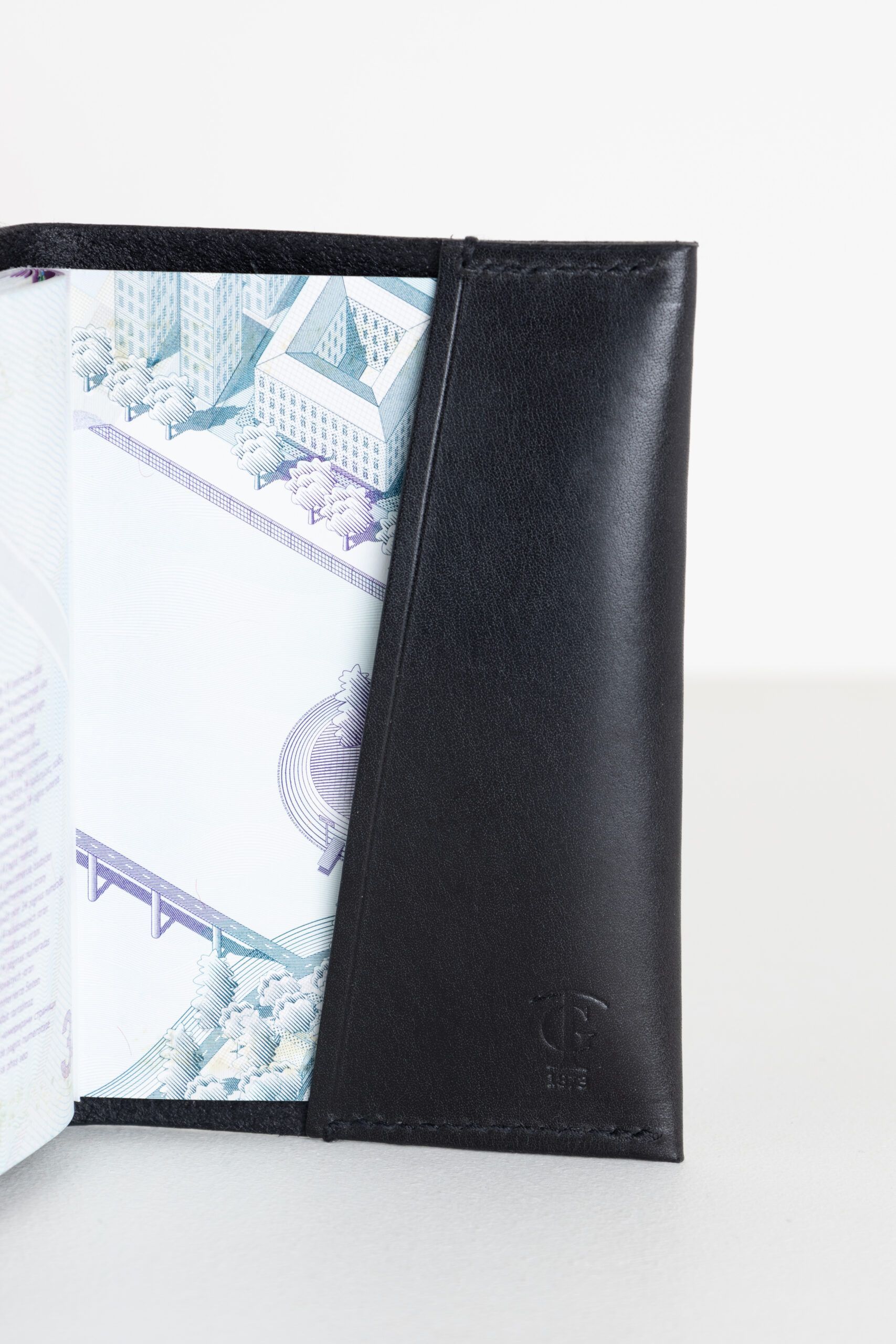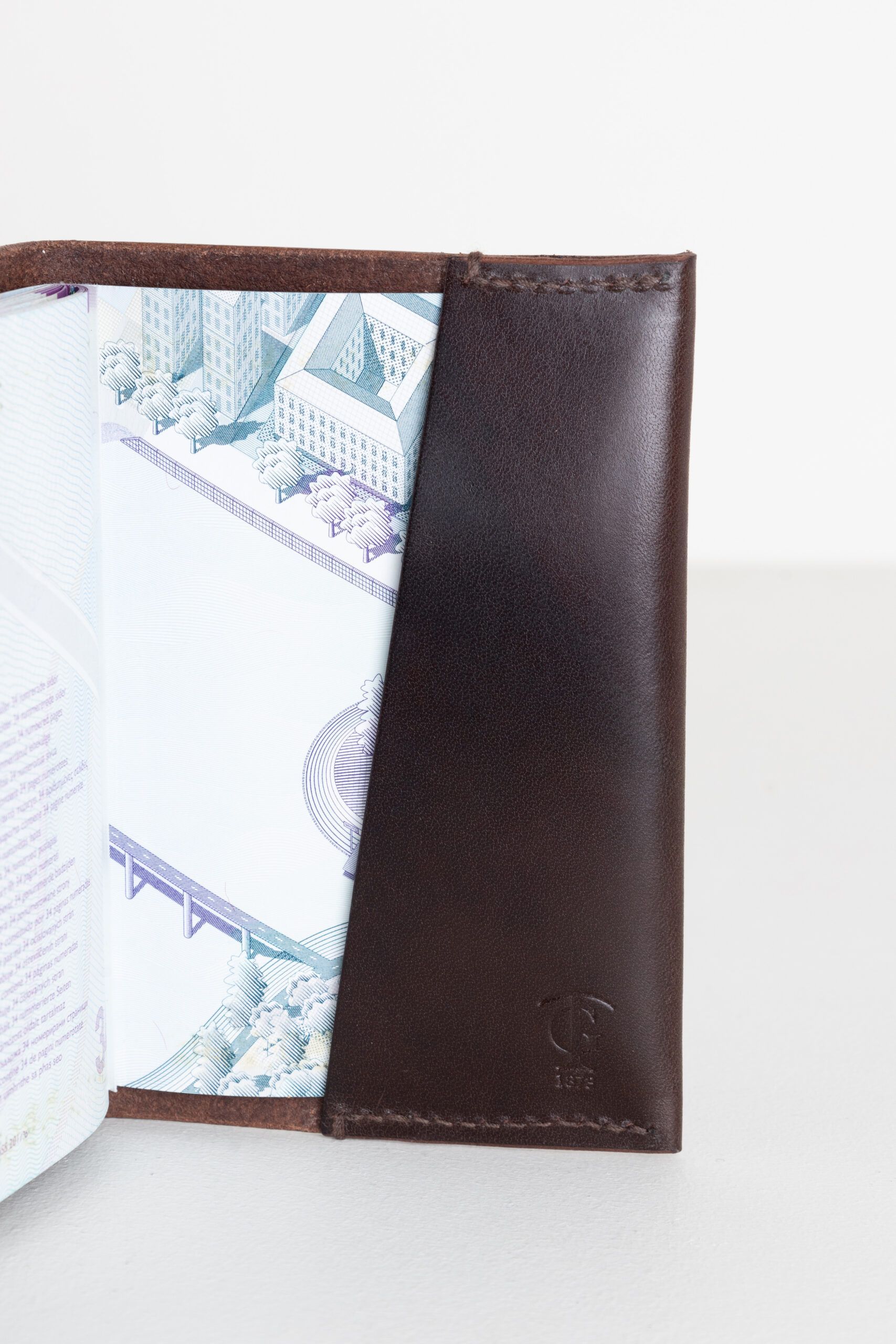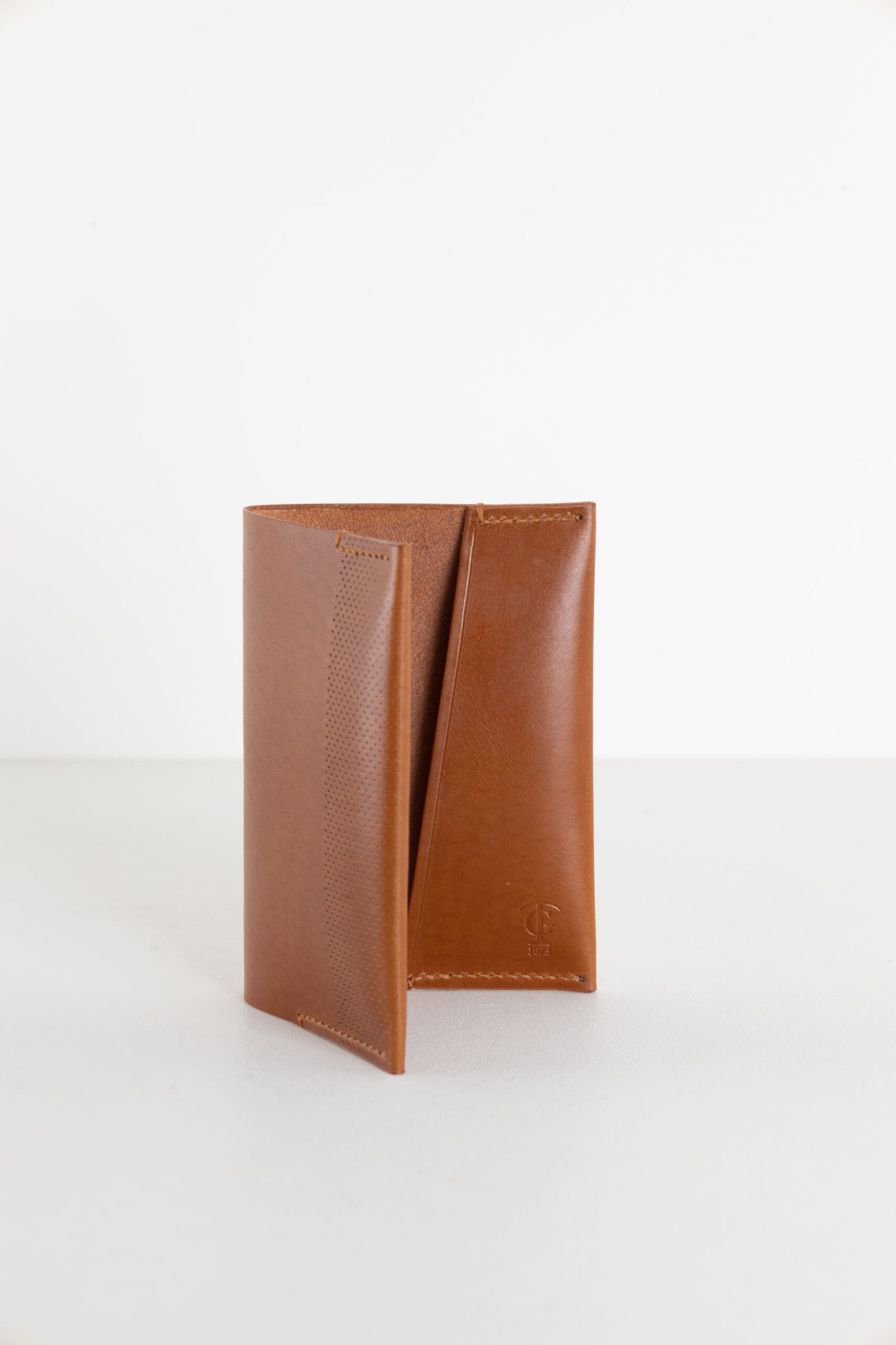 Ett smidigt passfodral med många vackra detaljer. Avsluten på sömmarna är gjorda för hand. De vikta kanterna där det präglade mönstret följer med narvlädret från utsidan till insidan skapar en sömlös känsla. Diskret logotyp i fodralets insida.