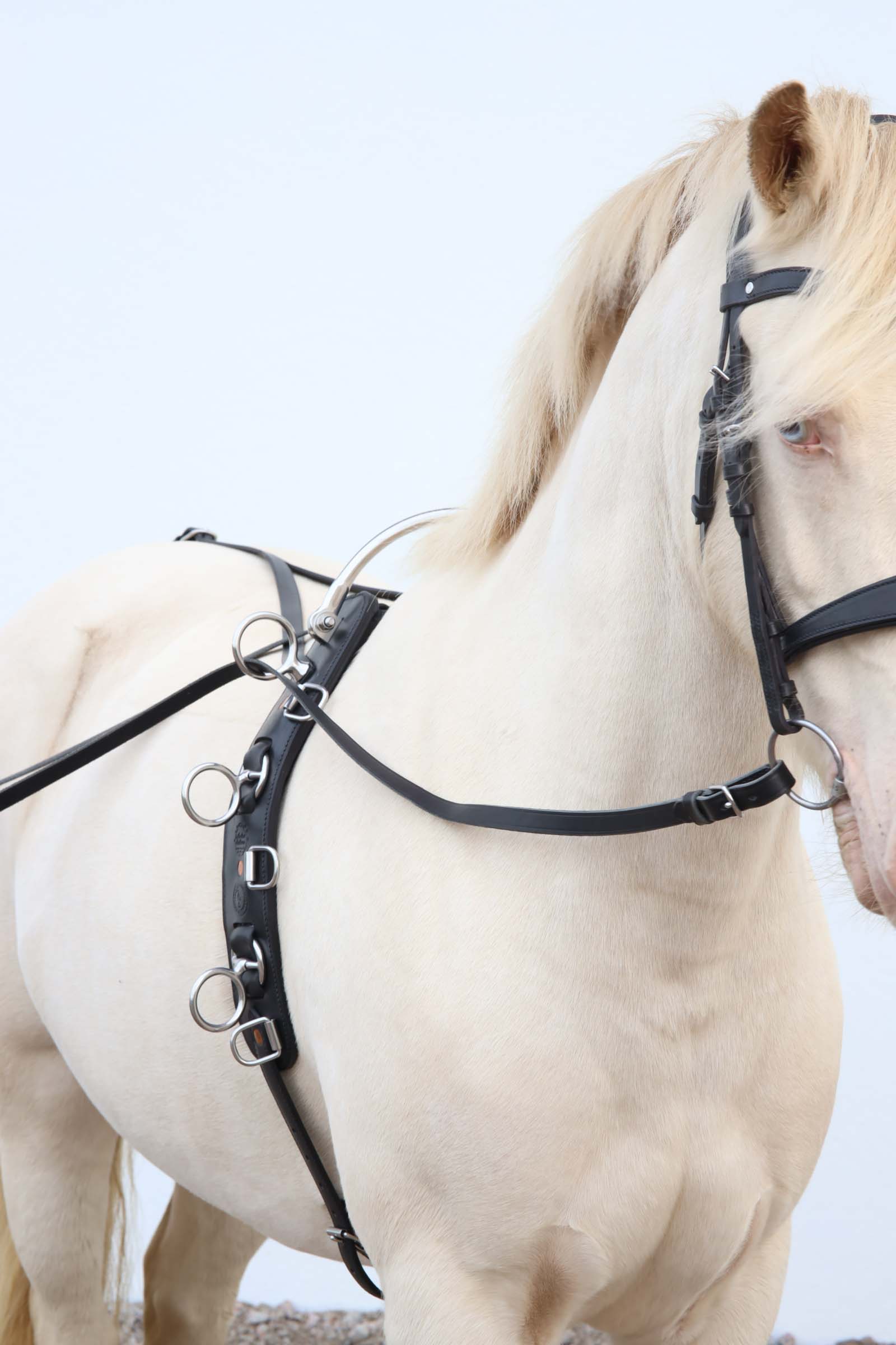 Flexibel tömkörningsdäckel med ledad båge för maximal ställbarhet. Tagelstoppade bossor för den bästa passformen. Framtagen i samarbete med Anders Eriksson, som har lång erfarenhet av att arbeta hästar på töm.